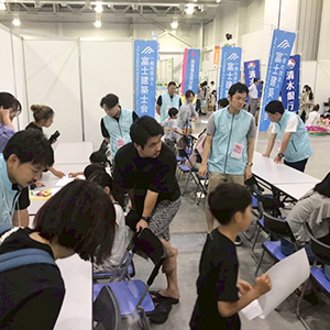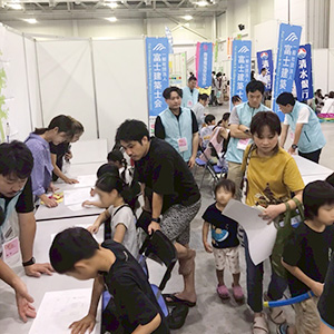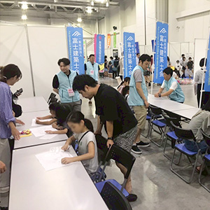 富士建築士会は毎年恒例、子どもたちが建築士の仕事を体験できるブースを出展しました。